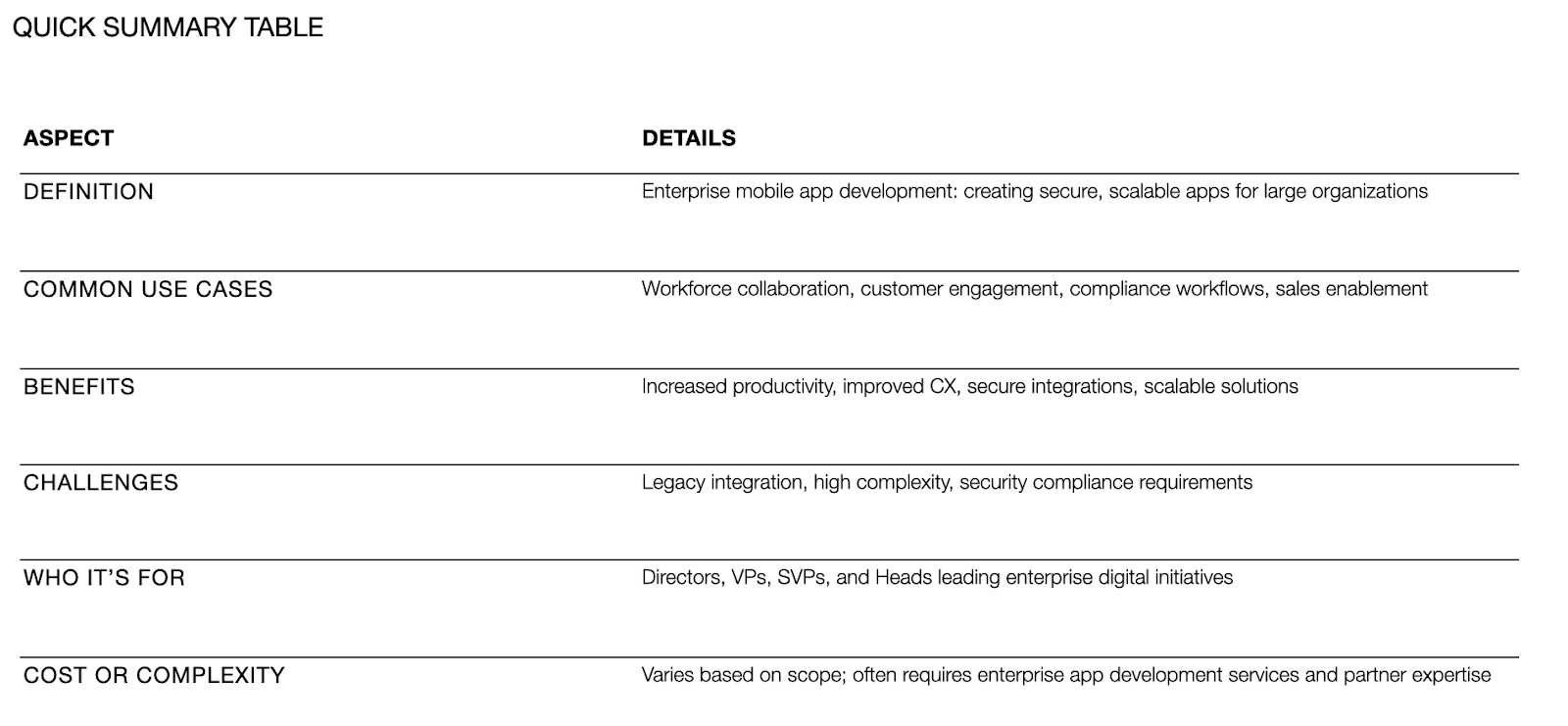 This article demystifies enterprise mobile app development, answering common questions senior decision-makers face when evaluating custom enterprise app development solutions. Directors, VPs, SVPs, and Heads at large enterprises will find clarity on benefits, risks, costs, and strategic considerations. By the end, you will have actionable insights to make informed choices about enterprise app development services and solutions.